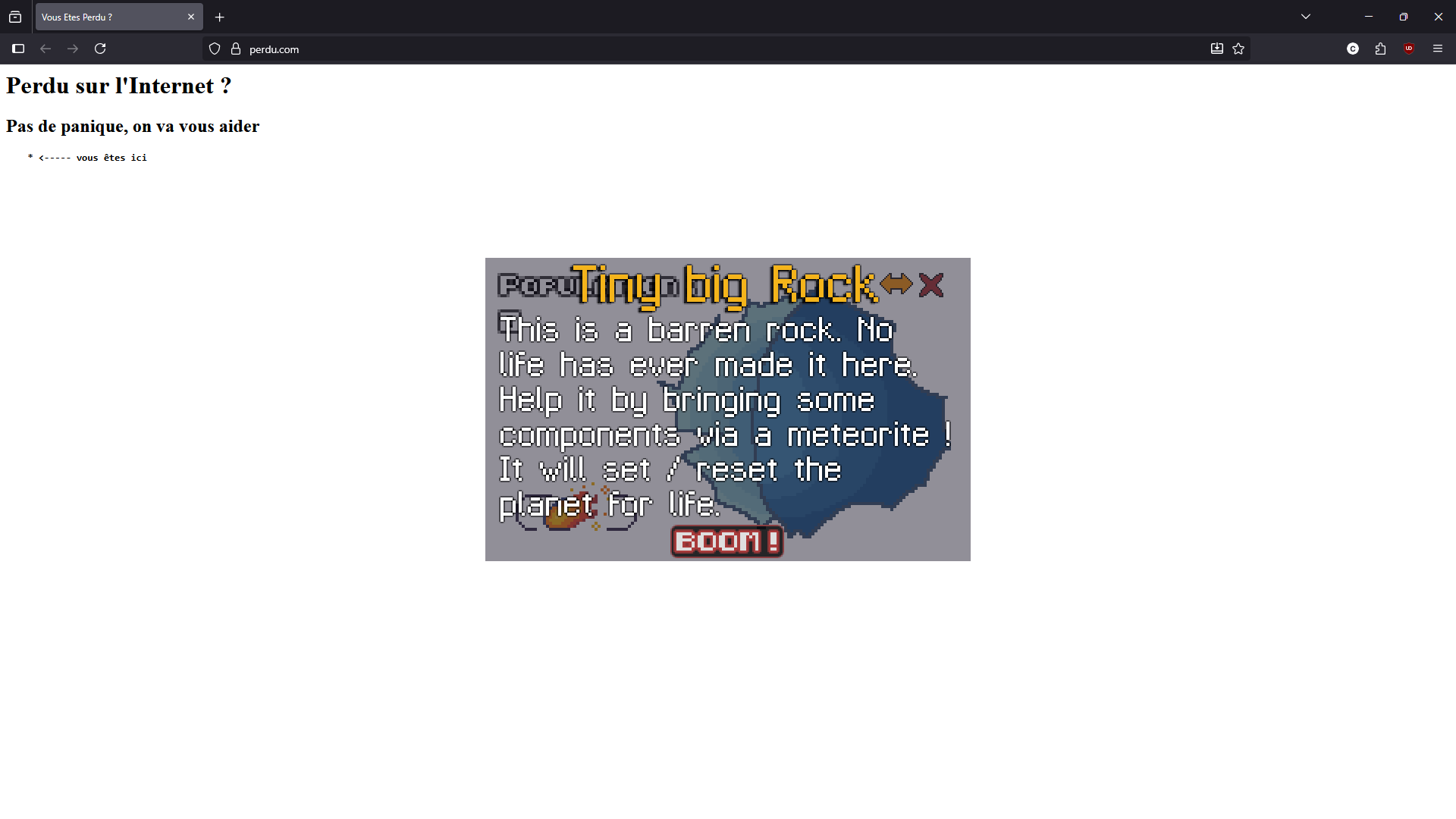 It will set the planet for life. Watch the inhabitants grow and live below. Until they're too numerous, or you're bored, at least. Then reset it by sending a new meteorite !